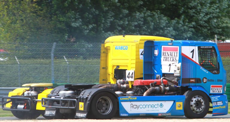 Le local de l’étape est le jeune Thomas Robineau, qui est 3ème au classement général.En Championnat d’Europe la bagarre au couteau aura lieu entre l’allemand Jochen Hahn et l’espagnol Antonio Albacète.Ils sont tous deux sur MAN et séparés d’ un point seulement!L’organisation nous communique que “cette 28ème édition sera aussi placée sous le signe du cœur puisque l’équipage Robineau accueillera des enfants de l’Association Rêves, organisation caritative dont la mission est de réaliser les rêves de jeunes malades.Quatre enfants de la Sarthe, atteints d’une maladie grave, passeront une journée au sein d’une équipe qui tentera de leur faire oublier l’hôpital en leur faisant vivre un Grand Prix, avec en prime un baptême de piste aux côtés de Thomas Robineau !”En dehors des courses, ces 24 Heures du Mans Camions sont un festival d’animations! A commencer par le Truck Sow qui verra les 200 camions exposés défiler sur la piste.