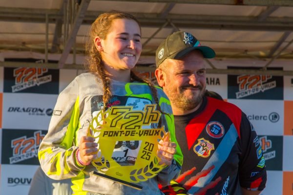 « Je cours depuis l’âge de 6 ans en quadcross, puis j’ai gravi les échelons sur un KTM 450 en Clubman en Irlande. J’étais déjà venue avec une Anglaise à PDV en 2018 en Kenny Contest mais nous avions eu un souci mécanique. Je roule actuellement au Nora British MX. Participer ici aux 12 heures au sein de cette équipe féminine et remporter la catégorie est un accomplissement. »