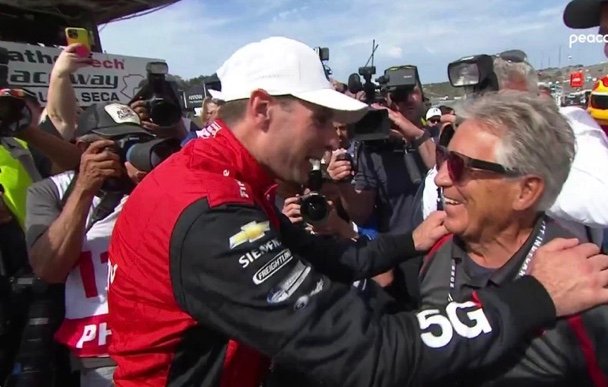 WILL POWER avec son’ BOSS, le patriarche ROGER PENSKE[/caption] A la question : Pouvez-vous prendre un moment pour réfléchir à ce que vous avez réalisé aujourd’hui, Will a répondu :« Une étape importante. Être là-haut avec un gars emblématique comme Mario est incroyable. Quand je pense à l’époque à laquelle il a couru, à quel point c’était dangereux et à quel point c’était plus risqué, je suis époustouflé d’être là avec Mario. C’est super d’avoir Mario ici. Quelqu’un que je respecte énormément et dont j’étais un grand fan. Je veux échanger un casque avec lui, mettre le sien dans ma collection s’il le ferait. » [caption id="attachment_406375" align="aligncenter" width="800"]