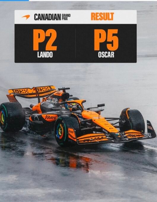Le leader du Championnat du monde et triple Champion en titre, précédant sous le drapeau à damier et dans l’ordre, la McLaren de Lando Norris, les Mercedes du poleman George Russell et de Lewis Hamilton. Lesquels devancent la seconde McLaren d’Oscar Piastri, les deux Aston Martin de Fernando Alonso et du régional, le Canadien Lance Stroll et la Racing Bulls de Daniel RicciardoLando Norris, lui confiait :« J’ai vraiment la sensation d’avoir offert une très bonne course du début à la fin, on avait un très bon rythme. Mais la safety car m’a coûté cher, c’était un peu l’inverse de Miami. Mais c’était une très bonne course, avec simplement un peu de malchance. Je ressentais énormément de stress au volant, mais en même temps c’était très agréable. J’étais le leader lors du premier relais, je creusais l’écart et tout se passait très bien. Mais c’est Montréal. Max a fait une très bonne course. Je suis satisfait de finir deuxième, on marque des bons points pour l’écurie. Je ne vais pas me plaindre, j’ai bien piloté. C’est bien d’être si proche de Max. »Quant à George Russell, le poleman, seulement troisième du GP, lui, il déclarait :« J’ai vraiment l’impression d’avoir loupé une belle opportunité. Au début Lando allait très vite, et je pense qu’on a fait quelques erreurs à ce moment-là. Mais c’est notre premier podium de l’année malgré tout, la voiture allait très vite ce week-end et on est revenus dans la bataille, c’est ce qu’on désirait. On avait un bon rythme, je pense qu’on aurait pu aller chercher Max à un moment mais il allait très vite sur les pneus mediums à la fin. Ma lutte avec Norris lui a permis de s’échapper et de prendre le large. Mais obtenir notre premier podium de l’année, c’est agréable. C’était une course dure mais correcte, c’est difficile de dépasser quand il n’y a qu’une trajectoire sèche. Il faut juste rester appliqué, et faire confiance aux autres pilotes. »