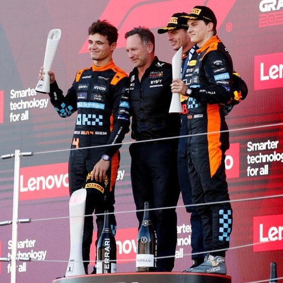 Une bataille derrière le ´Cannibale intouchable entre les pilotes McLaren s’est finalement soldée en faveur de Lando Norris, le Britannique prenant l’avantage au départ, puis le perdant lorsqu’Oscar Piastri son jeune partenaire Australien s’est arrêté sous une voiture de sécurité virtuelle, mais affichant ensuite suffisamment de rythme pour que l’équipe change de position et que Norris plus rapide en piste, ne le dépasse et file vers la seconde place, Piastri se contentant d’une belle troisième place synonyme tout de même de tout premier podium en GP F1!