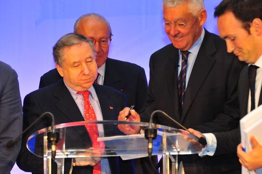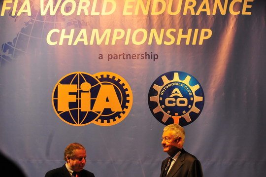 Jean Todt, Président de la FIA et Jean-Claude Plassart, Président de l’ACO, ont signé devant le parterre de journalistes l’accord définissant le futur Championnat du Monde d’Endurance, en présence de juristes qui l’authentifient.Accord valable pour une durée de dix ans.Il comportera en 2012, six courses. Deux en Europe, deux en Amérique et deux en Asie.Il y aura un titre constructeur, un titre pilote et une Coupe du Monde GTE, plus des Trophées pour les LMP2 et les LMP2, les GTEM et la meilleure écurie toutes catégories.Le barème des points comme toute compétition FIA, récompensera les dix premiers de chaque classement.Fréderic Henry-Biabaud, ancien directeur de la compétition Michelin et actuel patron de l’ILMC reste responsable de l’organisation.En effet, si la FIA définit, suivant un schéma habituel de commission et de groupes de travail, l’aspect réglementation technique et sportive, elle confie à l’ACO, en tant que promoteur commercial, l’organisation et la gestion des droits commerciaux et ce y compris les droits TV !!!!!Si l’ensemble des acteurs de l’endurance se réjouissent de la création d’un tel Championnat, quelques murmures inquiets souhaitent malgré tout que l’on oublie pas dans ces grands objectifs que certaines équipes restent de petites structures dont l‘endurance a besoin dans sa diversité…Car qui dit Championnat à label mondial, sous-entend, budget conséquent …Néanmoins, la naissance de ce Championnat du monde d’endurance semble rallier tous les suffragesNous y reviendrons avec les principaux intéressés : Equipes usines mais aussi structures privées Patrick Martinoli : Texte et photos