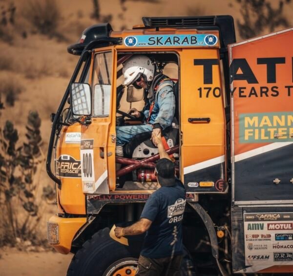 Chez les mastodontes du désert, Tomas TOMECEK l’emporte en finissant 4ème au général. Le Tchèque, seul dans son « vieux » TATRA remporte ainsi sa 5ème victoire sur l’AFRICA ECO RACE. Il devance les Hollandais Aad VAN VELSEN, Michel VAN VESLEN et Marco SIEMONS qui s’imposent aujourd’hui et pointent du coup en 5ème position au général avec leur SCANIA.Le GINAF de Cédric FERYN, Bjorn BURGELMAN et Tom DE LEEUW complètant le podium du jour et de l’épreuve.Dans la course Classic, Tom et Eric CLAYS remportent l’épreuve au terme des 27 Zones de Régularité et des plus de 1000 km de pistes avec une domination sans partage. Pour ses 70 ans, le pilote Belge aura l’honneur de hisser son TOYOTA BJ 73 de 1986 sur le podium afin de recevoir le trophée de cette première AFRICA ECO RACE CLASSIC.Ce dimanche 14 janvier 2024, après une dernière liaison de 248 km vers le mythique Lac Rose et une dernière spéciale sur la plage pour le fun, les lauréats et finishers monteront un à un sur le podium pour recevoir les trophées et médailles de l’AFRICA ECO RACE 2024. François LEROUXPhotos : AFRICA ECO RACE