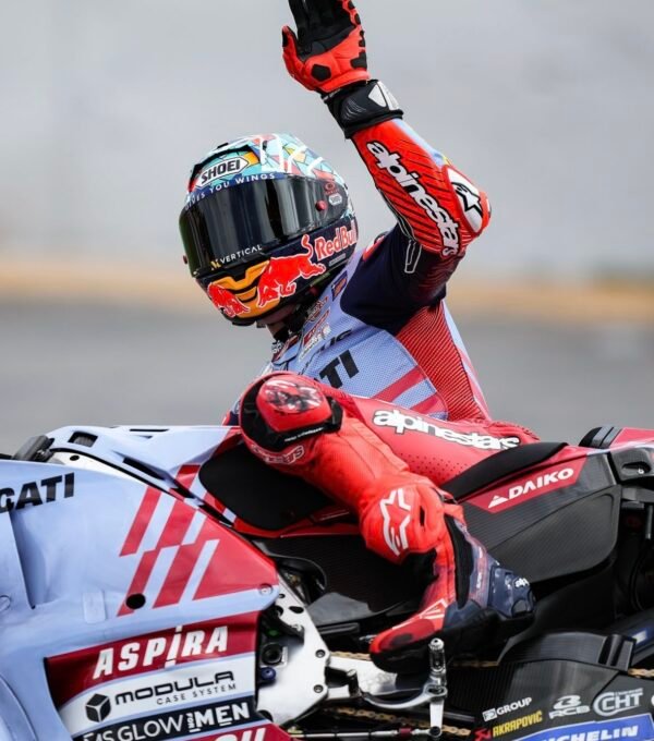 Et alors qu’il semblait filer vers la victoire, le pilote officiel Ducati que suivait à 0.763 l’Aprilia du poleman Aleix Espargarao, suivi du ‘rookie Pedro Acosta et de Marc Marquez, sous la pression tombait comme il le fait trop souvent lorsqu’il occupe le commandement.Les points perdus au fil, des GP vont commencer à peser lourd car son rival N°1 pour la conquête d’une troisième couronne, l’Espagnol de l’équipe Ducati Pramac, Jorge Martin, se classe au pied du podium, derrière Aleix Espargaro, Pedro Acosta et Marc Marquez et il empoche de nouveaux précieux gros points, lui!!!