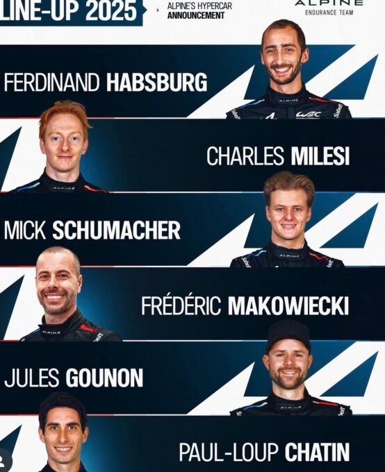 Quatre pilotes, la paire Française Charles Milesi et Paul-Loup Chatin, l’Autrichien Ferdinand Habsburg et l’Allemand Mick Schumacher prolongeront l’aventure avec les Bleus.Un autre tricolore Jules Gounon, cette année pilote de réserve, est désormais titularisé pour l’année 2025.Enfin un quatrième Français, Frédéric Makowiecki depuis des années pilote ‘ officiel Porsche, rejoindra également l’écurie Alpine pour lui apporter sa riche expérience et consolider le projet Alpine.La composition exacte des équipages et la livrée des A424 N°35 et N°36, seront révélées lors du lancement officiel de la future saison, début 2025.