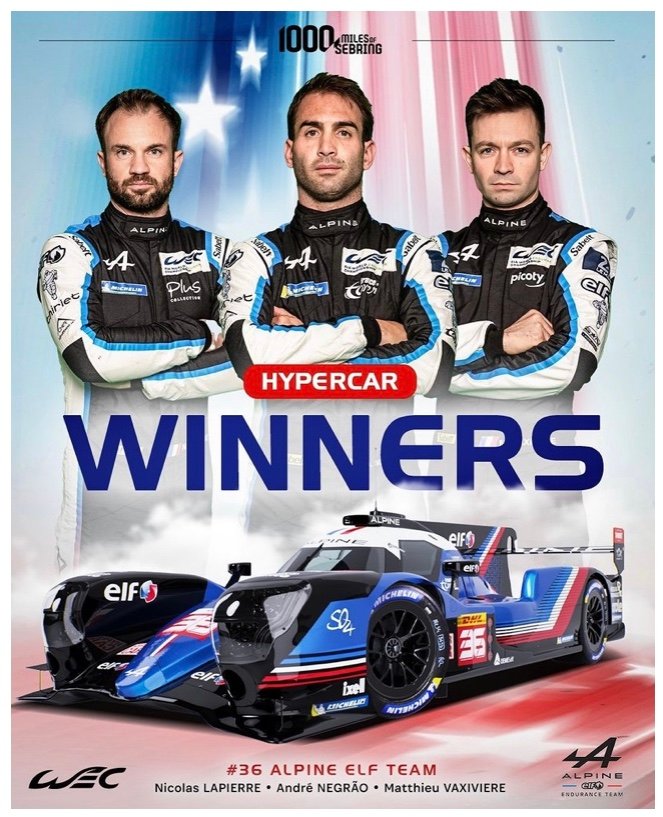 À l’issue du week-end, le staff Alpine analysera toutes les données récoltées avant de se plonger dans une semaine célébrant véritablement le sport automobile nord-américain, les 1000 Miles de Sebring première manche du WEC et les 12 Heures de Sebring, seconde course du Chamonnat d’endurance US de l’IMSA, partageant l’affiche de l’événement.