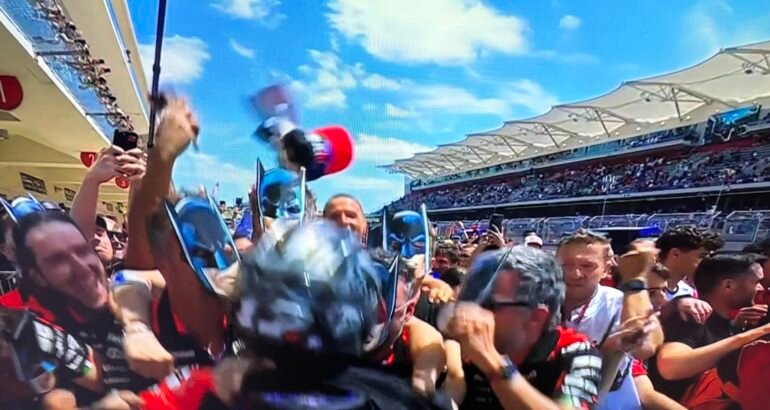 Les deux hommes ne font qu’une bouchée du « Martinator », qui voit Maverick Viñales revenir dans sa roue comme un boulet de canon. Nouveau leader, Marc Márquez semble en excellente position pour s’imposer à nouveau pour … une huitième victoire possible mais le N°93, est victime d’une chute au 11ème virage qui le prive peut-être de ce huitième succès au COTA.Revenu au contact du groupe de tête, Maverick Viñales chaussé lui en pneu médium se débarrasse d’un Jorge Martín en grande difficulté sur son pneu tendre, avant de retrouver les commandes du GP à huit tours de la fin.À cinq boucles du terme, Enea Bastianini s’attaque à Jorge Martín pour le podium mais l’Espagnol veille.Quelques tours plus tard, le pilote d’usine Ducati trouve l’ouverture sur son vis-à-vis et s’offre la troisième place derrière le fantastique Pedro Acosta mais surtout un Maverick Viñales absolument imbattable ce week-end, qui entre dans l’histoire du MotoGP avec son dixième succés obtenu avec une troisième marque !!! LA SUITE DU TOP 10. QUARTARAO REMONTE DE 17 A 12