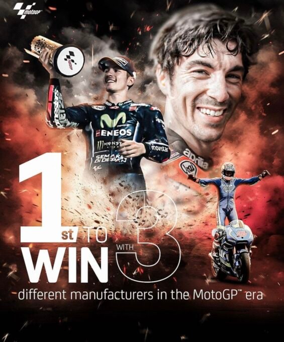 HISTORIQUE… « Bat Mav » devient le premier homme de l’ère MotoGP™ à triompher pour trois constructeurs différents !!!Quel spectacle nous a offert une fois encore le MotoGP ! Les acteurs de la catégorie reine avaient rendez-vous ce dimanche après-midi 14 avril sur la piste du circuit du au COTA à Austin, pour la course du Grand Prix des Amériques au Texas.Au terme d’un GP absolument grandiose qui restera assurément dans les mémoires, l’Espagnol Maverick Viñales de l’équipe Italienne Aprilia Racing, signe un carton plein et devient le premier pilote à triompher pour trois marques différentes dans l’ère MotoGP…Le pilote Aprilia devance au terme des vingt tours un exceptionnel Pedro Acosta, le jeune ‘ rookie qui découvre et débute en MotoGP cette année, lui qui monte du Moto2 zt Moto3, les deux disciplines tremplin vers le Moto GP, où il a été les saisons précédentes, sacré Champion du monde !Lequel Acosta confiait:« Au-delà du résultat, c’était une course incroyable ! Je me suis battu avec eux, j’ai pris beaucoup de plaisir et j’apprends tellement au contact de tous ces grands pilotes. Je savais que c’était risqué de prendre le pneu medium, mais c’était le bon choix, et je suis heureux de ce résultat. »L’Italien Enea Bastianini, le partenaire du double Champion du monde en titre, le transalpin Fransesco ‘Pecco Bagnaia – peu en vue ce week end au COTA -au sein de l’écurie officielle Ducati Lenovo.Retour sur cet affrontement d’anthologie à Austin.