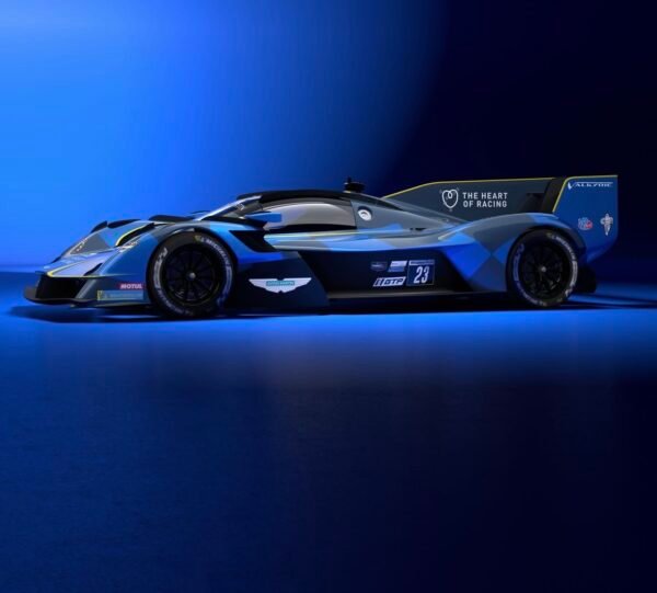 Aux USA, l’Aston Martin Valkyrie engagée dans le Championnat d’endurance de l’IMSA Weather sera différente avec une livrée spécifique.La N°23, sera confiée à Ross Gunn et Roman De Angelis et elle, elle arborera le bleu emblématique du Team ‘The Heart of Racing. Ce choix souligne l’engagement fort de l’équipe et assure une identité claire sur les circuits Américains.Comme les Hypercar du Mondial WEC, cette version GTP dispose d’une boîte de vitesses séquentielle à sept rapports et de suspensions à double triangulation, conçues pour supporter les rigueurs des courses d’endurance.