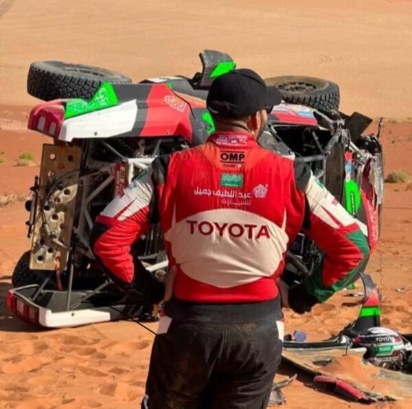 Une fois le départ pris, le premier rebondissement on l’a dit est survenu après seulement 51 kilomètres avec le crash de Yazeed Al Rajhi.Leader incontesté de ce premier aperçu du Dakar, l’idole locale a irrémédiablement accidenté son Toyota Hilux Overdrive…Adieu pour lui la victoire finale…Le retrait du leader de la course et aussi d’Overdrive depuis le départ de Nasser Al Attiyah chez Hunter BRX Prodrive, donne du coup de grands espoirs à ses rivaux, Nasser Al-Attiyah, Carlos Sainz, Mattias Ekström et Sébastien Loeb !