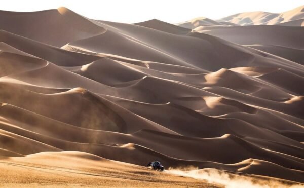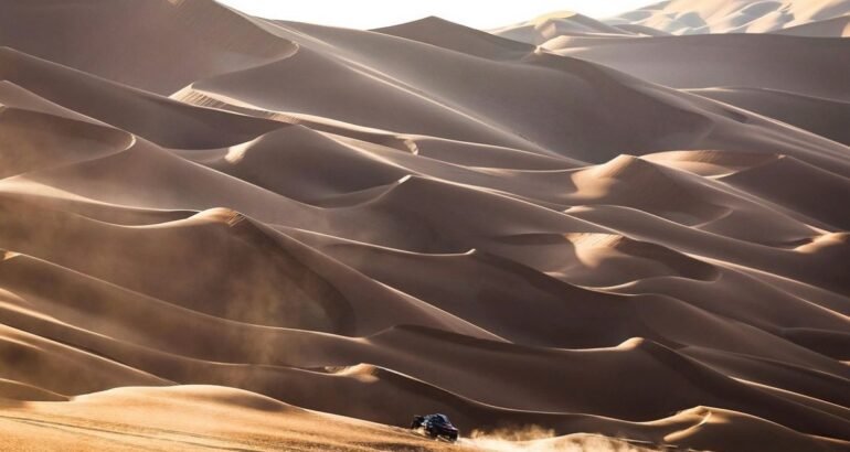 L’Espagnol d’Audi qui s’est montré le pilote le plus rapide sur les dunes Saoudiennes du désert du Rub Al, Khali, à tel point qu’il a été le premier à franchir le dernier ‘Way-point de la journée.Le podium virtuel étant complété par son partenaire chez Audi Mattias Ekström, quatre minutes et demie derrière son coéquipier, et par un sensationnel Sébastien Loeb qui est sacrément remonté et lâche seulement cinq minutes derrière le leader provisoire à mi-spéciale avant l’arrêt de 16 heures.L’Alsacien qui lui, confiait : « On a bien roulé, on fait une belle étape. Le différentiel avant de la voiture émet du bruit inquiétant depuis cent bornes mais pour l’instant ça roule et j’espère que ça tiendra. Pour le reste, je pense qu’on n’a pas perdu beaucoup de temps, on a fait ce qu’on voulait faire. Mais je n’ai aucune idée des écarts. »