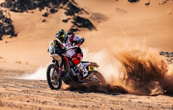 En ce samedi 6 janvier dès la 1ére journée, la province de Médine qui se situe dans le quart nord-ouest de l’Arabie Saoudite, a servi de cadre exclusif à la longue spéciale de 414 kilomètres qui a d’emblée placé les pilotes et équipages du Dakar 2024, face à de réelles difficultés…En quittant AlUla, la partie de slalom entre les canyons s’est jouée sur du sable, mais le terrain est rapidement devenu bien plus technique !Du coup, plusieurs motards ont vite été pris au piège des cailloux, y compris le vainqueur du prologue, tel le pilote Espagnol de Honda, Tosha Schareina qui figurait parmi les favoris à moto, mais pas le gagnant du jour le Botswanéen Ross Branch, ni même le toujours surprenant ‘ cow boy US, Mason Klein.