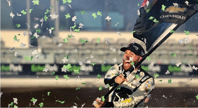 Et Ross Chastain fait coup couble car il offre à son équipe, la Trackhouse Racing , sa première victoire en NASCAR Cup Series.Ross Chastain qui déclarait à l’arrivée :« C’est dingue. Battre l’un des meilleurs comme AJ Allmendinger. Je sais qu’il sera énervé contre moi. Nous étions à fond tous les deux. Il m’en doit une. Quand la victoire se joue, je ne peux pas ne pas me battre. »Et symbolique comme lors de chacune de ses victoires en NASCAR, Ross Chastain a fracassé une pastèque au sol, sa famille possédant une exploitation de pastèque en Floride!!!