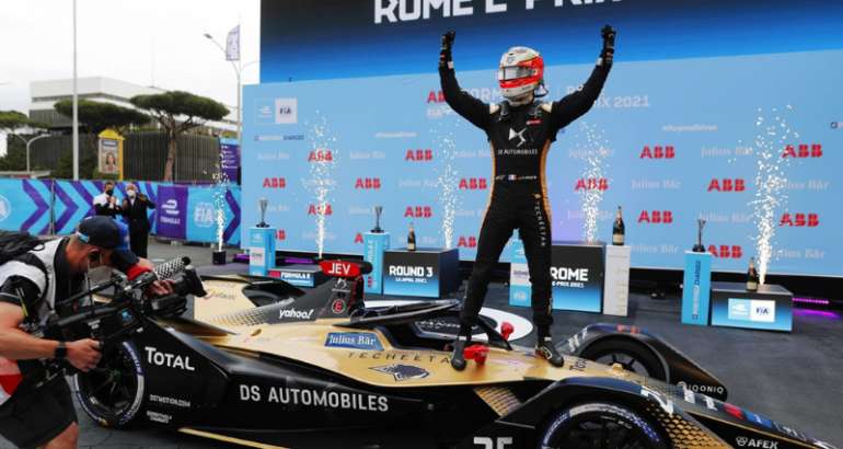 FORMULE E 2021 – GP ROME 1ére COURSE – VICTOIRE DE VERGNE LE 10 AVRIL[/caption] Belle victoire ce samedi 10 avril au GP de Rome lors de la 1ére des deux courses de la seconde manche du Championnat du monde – après celle en Arabie Saoudite – des monoplaces électriques de la Formule E, pour le Français Jean-Éric Vergne, ancien double Champion de cette displine.Au volant de sa DS-Techeetah, ‘JEV’ décroche sa première victoire de la saison 2021 dans le cœur de la ville éternelle, Rome.A l’issue d’une épreuve qui a débuté sous le régime du Safety Car, en raison de la pluie qui a détrempé la piste dans les minutes précédant le départ!Jean-Éric Vergne offre ainsi son premier succès dès sa première sortie à la toute nouvelle monoplace électrique DS qui débute ce week-end en compétition, conçue par l’équipe DS-Techeetah.Longtemps positionné et bien placé en embuscade en deuxième position derrière l’Audi du Brésilien Di Grassi – qui roule en Formule e depuis la création de cette série en 2014 – Jean-Éric en toute fin de course, a su bénéficié d’un ennui technique survenu à la monoplace du leader Brésilien – transmission – pour s’emparer alors du commandement et filer en tête vers l’arrivée, franchissant le drapeau à damiers devant les duettistes du Team Jaguar, le Britannique Sam Bird et le Néo-Zélandais Mitch Evans.L’heureux vainqueur qui confiait :« C’était une course très difficile, les conditions étaient très glissantes, j’ai frôlé le mur plus d’une fois mais j’ai réussi à survivre et à m’imposer, c’est génial ».Avant de preciser: “Nous avons flirté avec les murs durant toute la course, maisnous avons survécu. La bagarre avec Lucas était très belle et c’est dommage qu’il ait été victime d’un problème technique en fin de course, mais ça fait partie du sport automobile. C’est super de gagner avec une nouvelle voiture dès sa première course et c’est difficile de décrire mes sentiments. Cela démontre que cette monoplace est bien née et c’est surtout la preuve que tout le fantastique travail réalisé par les ingénieurs de DS Performance et l’équipe DS Techeetaf porte ses fruits.Quant au poleman, le Belge de l’équipe Mercedes Stoffel Vandoorne, il a été victime de la fougue de l’Allemand Andre Lotterer, parti à ses côtés en 1ére ligne mais qui s’est loupé au freinage…Le Britannique de l’écurie Nissan, Oliver Rowland récupérait le leaderhip mais il se voyait infligé une pénalité pour avoir utilisé trop de puissance.Au volant de l’une des Audi, Di Grassi s’emparait du commandement devant Jean-Éric Vergne. On assistait alors à une belle passe d’armes entre les deux, jusqu’à ce que l’Audi rencontre un problème technique on l’a dit, à deux tours du but, laissant du coup le champ libre à Vergne.Mais visiblement surpris par la monoplace du Brésilien au ralenti sur la piste, la Mercedes de Stoffel Vandoorne, bien revenu en sixième position, partait à la faute et tapait.Cela avait pour conséquence la neutralisation de la course jusqu’au drapeau à damier.Signalons aussi parmi les nombreux abandons, celui du Champion du monde en titre, le Portugais Antonio Félix da Costa, l’équipier de Vergne chez DS Techeetah.Au classement provisoire du Championnat, Sam Bird s’empare de la tète totalisant 43 points devant le Néerlandais Robin Frijns second avec 34 et De Vries avec 32. Mitch Evans, avec 32 points et Vergne avec 25, complétant le Top 5Seconde course de ce Grand Prix de Rome ce dimanche. Gianpietro CERVONIAPhotos : FORMULE E [caption id="attachment_355722" align="aligncenter" width="800"]