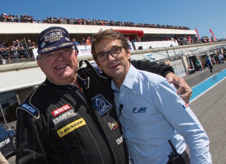 Charles KRAJKA – Photo / Michel PICARD[/caption] Nous n’aurions sans-doute pas assez de temps pour saluer ce Samedi toutes ces légendes qui enfilaient gants et casques, avec ces gestes tant de fois répétés au long de leurs brillantes carrières.Jean-Claude Chemarin, vainqueur à 4 reprises (1976 avec Alex Georges puis 77, 78 et 79 avec le régretté et inoubliable Christian Léon) n’avait pas omis de nouer son foulard fétiche jaune d’or.Je me remémore une arrivée dantesque des 24 Heures de Barcelone 79, qu’il venait de remporter avec Christian Léon, où son cher papa, sauva son fiston d’une asphyxie en dénouant ce foulard que les aficionados voulaient lui arrache[caption id="attachment_408653" align="aligncenter" width="828"]