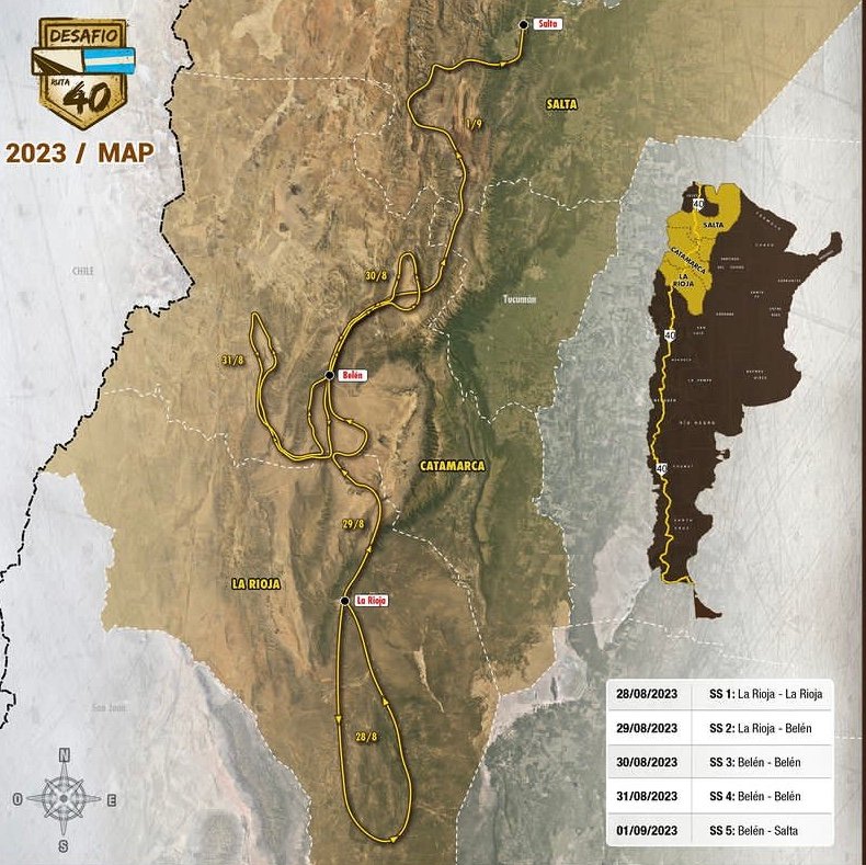 J-6 avant la quatrième et avant-dernière manche du Championnat qui aura lieu du 26 août au 1er septembre en Argentine, à l’occasion de la 11éme édition du Desafío Ruta 40 YPF.2 804 km répartis sur 5 étapes entre La Rioja, Belén (Catamarca) et Salta attendent les concurrents du W2RC engagés sur la course qui, avec les pilotes locaux inclus, affiche un total de 99 inscrits.