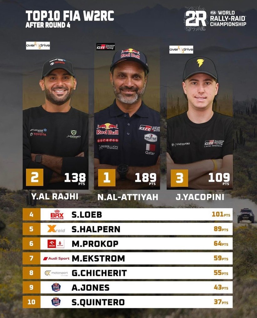 Le Champion du monde en titre signe en outre sa troisième victoire cette saison et conforte du coup sa position de leader avec 189 points. Le Saoudien Yazeed Al Rajhi (Overdrive Racing) finit trois et reste second du Championnat avec 138 points.Son coéquipier, l’Espagnol Juan Cruz Yacopini termine deuxième et s’offre la troisième position au Championnat avec 109 pts.