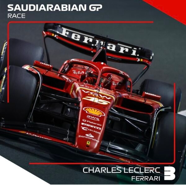 Car du coup ce samedi 9 mars, c’est donc au tour de Charles Leclerc, l’autre pilote des ‘Rosso – classé quatrième à Bahreïn – et qui pointe à son tour à la troisième place pour la Scuderia Ferrari.Comme depuis trois saisons, le Néerlandais Max Verstappen, a encore une fois survolé ce deuxième Grand Prix 2024, celui d’Arabie saoudite, ce samedi, signant ainsi sa 56éme victoire en carrière!Sergio Perez, l’autre pilote Red Bull et Charles Leclerc avec sa Ferrari, complétant, répétons-le, le podium.