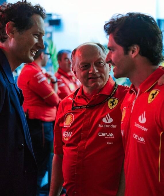 Carlos aprés son intervention vendredi était déjà dans le stand Ferrari ce samedi pour assister au GP et ce en compagnie du Président de Ferrari, le petit fils Agnelli, John Elkann !