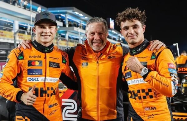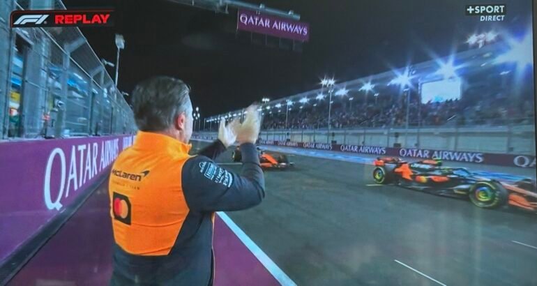 Les McLaren-Mercedes ‘Boys signent un beau doublé ce samedi à l’arrivée de la Course ‘ Sprint sur la piste de Losail à Doha au Qatar, où Lando Norris, constamment en tête de cette manche ‘Sprint, après être parti depuis la pole, a sous le passage du damier… freiné juste ce qu’il fallait pour … offrir la victoire à son jeune équipier Australien Oscar Piastri dans la ligne droite d’arrivée de l’ultime tour !!!