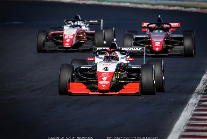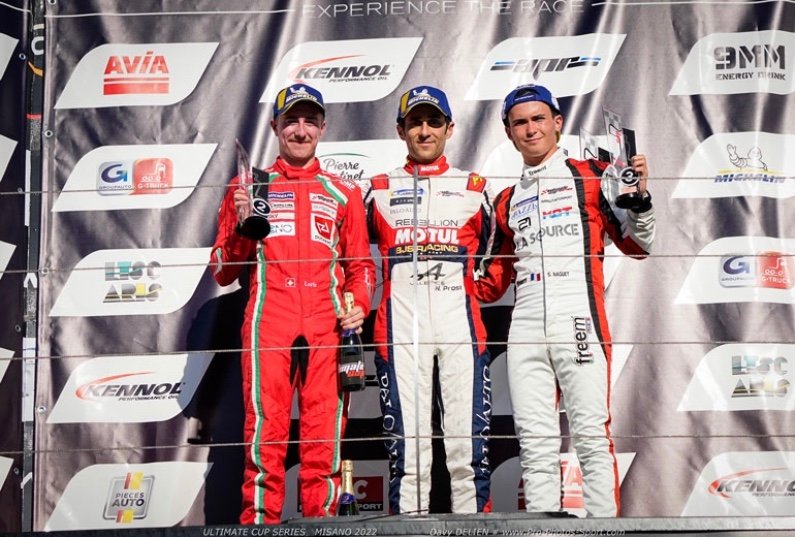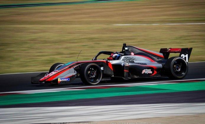 C3 : La grille de départ de la troisième et dernière course du week-end Italien, est établi en fonction des résultats obtenus lors des deux précédentes. Avec deux victoires, Nicolas Prost, s’élance donc en première ligne devant le jeune pilote de Formula Motorsport, Sacha Maguet.Du haut de ses 17 ans, ce dernier ne s’est pas laisser faire face au pilote chevronné et Champion en titre de la discipline, en le dépassant dans les premiers instants de la course. Nico Prost a récupéré son dû sans se faire prier pour tenter d’accrocher un nouveau succès.La route était cependant encore longue pour lui qui, néanmoins tour après tour, accroît son avance sur ses poursuivants. Solidement en tête à mi-course, Nicolas Prost est pourtant victime d’une casse de la roue avant gauche de sa F3R dans les dernières minutes et ne peut rallier l’arrivée.Le malheur des uns, faisant parfois le bonheur des autres, à commencer par celui de Sacha Maguet, nouveau leader, face à Loris Kyburz, le pilote Graff, bien remonté de la huitième place jusqu’à la deuxième…Malgré la pression incessante exercée par le pilote du Graff, Sachat Maguet s’imposait pour la première fois de sa jeune carrière en sport automobile, en Ultimate Cup Series, avec trois petits dixièmes d’avance sur Loris Kyburz et David Cristini du Race Motorsport. Florian DEFETPhotos : Davy DELIEN