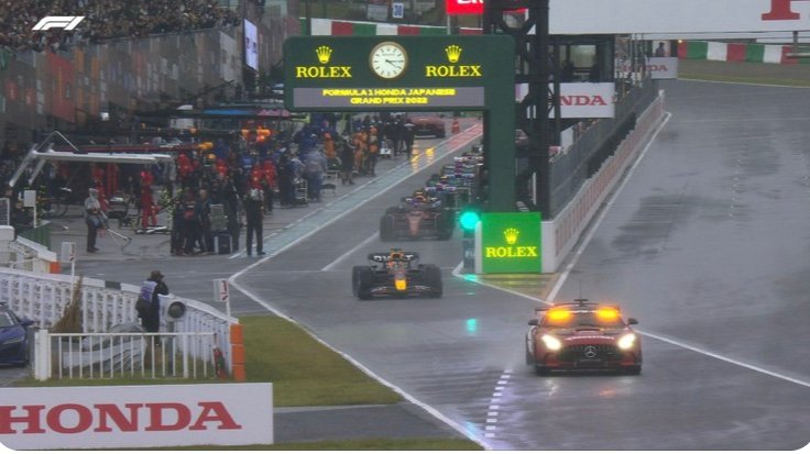 Donné à 7 HEURES – heure Française – sous des trombes d’eau sur le circuit de Suzuka, le départ du Grand Prix du Japon, a été vite stoppé, d’abord au drapeau jaune, puis dans la foulée, au drapeau ROUGE à la suite de la sortie de piste de la Ferrari de l’Espagnol Carlos Sainz Jr !Lequel expliquait : ‘ Je suis parti en aquaplaning et je ne voyais rien Les positions étaient les suivantes en tète :1. Verstappen, 2. Leclerc, 3. Perez, 4. Ocon, 5. Hamilton, 6. Alonso, 7. Russell, 8. Ricciardo, 9.Tsunoda et 10 Mick SchumacherA signaler – mauvais souvenir et le drame de Jules Bianchi ici même à Suzuka le 5 octobre en 2014 – la présence d’un camion dépanneuse qu’a évité de justesse le Français de l’équipe Alpha Tauri, Pierre Gasly! INADMISSIBLELe pilote Français revenu à son stand et sorti de sa monoplace hurlait :« J’aurais pu me tuer, j’aurais pu me tuer»La réaction de Fred Vasseur après l’apparition d’une grue sur la piste : « Ce n’est pas acceptable