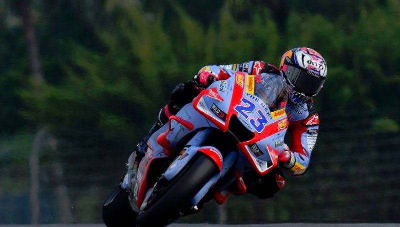 Aleix ESPARGARO[/caption] Mais deux pilotes auront toutefois été capables de battre le record officieux du circuit, établi par Danilo Petrucci en 2019 : Aleix Espargaró le pilote de l’écurie Aprilia Racing tout d’abord, puis ensuite Enea Bastianini, qui pilote lui l’une des Ducati du Gresini Racing, avec son chrono en 1’58.131, qui le propulsait très logiquement au sommet de la feuille des temps.