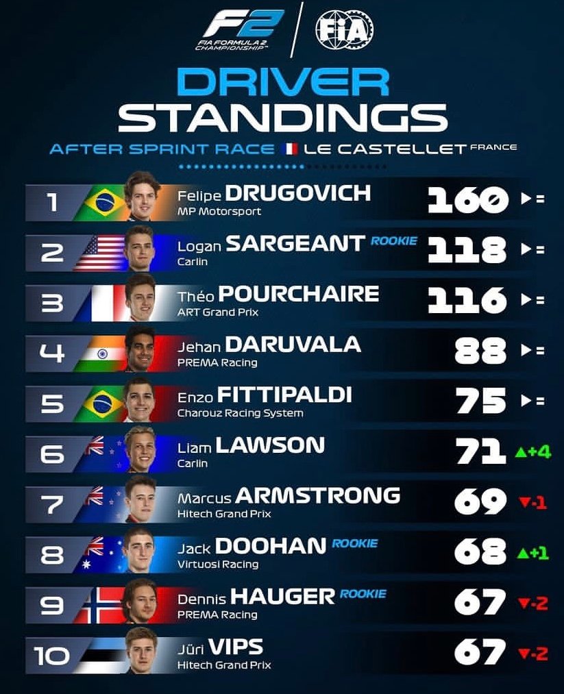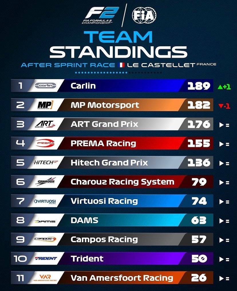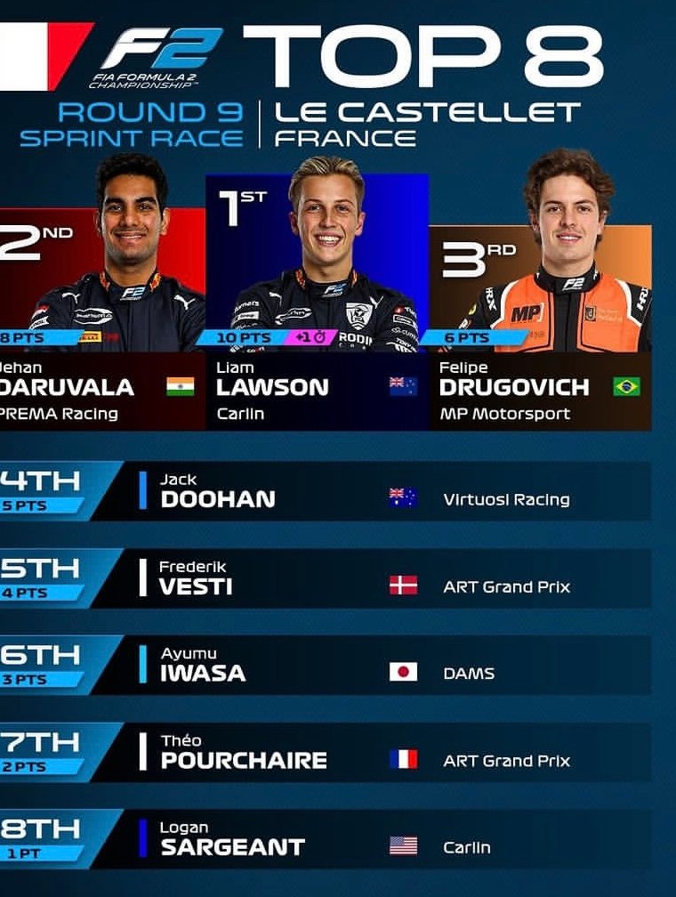 En effet, peu aprés l’arrivée, quatre pilotes ont été pénalisés à l’issue de la course Sprint de cette neuvième épreuve de la saison au Castellet! Tout d’abord, Théo Pourchaire s’est vu infliger une pénalité de cinq secondes pour avoir forcé Marcus Armstrong à sortir de la piste au virage 11 lors des derniers tours de la course. Les commissaires ont constaté que le pilote ART Grand Prix avait tenté de dépasser le Kiwi à l’intérieur du virage 11 mais n’était pas en mesure de tenir la ligne, et en conséquence, il a couru large et a forcé le pilote Hitech Grand Prix à sortir de la piste… Deuxièmement, Jüri Vips a également reçu une pénalité de cinq secondes pour avoir forcé Armstrong à quitter la piste au virage 15. Les commissaires ont déterminé que Vips avait tenté de dépasser son coéquipier chez Hitech à l’intérieur du virage 15 mais n’a pas pu tenir la ligne. Par conséquent, le pilote Estonien a couru loin, a fait un léger contact avec la voiture d’Armstrong et l’a forcé à sortir de la piste. De plus, Armstrong s’est également vu infliger une pénalité de cinq secondes pour avoir causé une collision avec Jehan Daruvala au tour 19. Alors qu’il se battait pour la deuxième place, Armstrong a tenté de dépasser le pilote Prema Racing à l’intérieur du virage 8. Cependant, le Néo-Zélandais, a eu un contact avec Daruvala puis a couru large à la sortie. Ce contact obligeait le pilote Indien à sortir de piste et à rejoindre la sortie du virage 9 sans en tirer un avantage durable.