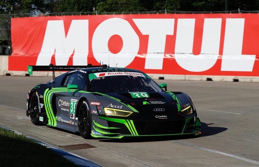 IMSA[/caption] Derrière les deux Corvette, en istz mais hors classement, la catégorie GT ne figurant pas au programme du meeting de Détroit,et du coup seules protagonistes en vertu d’une exposition à Detroit, se classe la 1ére voiture de la catégorie GTD gagnante…En l’occurence, l’Audi R8 de Richard Heistand, auteur de la pole, et du Pro Jeff Westphal. Pour décider de la deuxième place l’arrêt de la BMW Turner qui a provoqué l’avertissement final et immédiatement derrière les vainqueurs, on se trouve Ross Gunn et Roman De Angelis sur l’Aston Martin Heart Of Racing.Troisième place pour Misha Goikhberg et Marco Mapelli et la Lamborghini Huracan de l’équipe Grasser.Problèmes hélas pour les deux Lexus du Team Vasser-Sullivan, avec une voiture impliquée dans un contact avec la Lamborghini Miller et pénalisée, et l’autre ralentie par une crevaison.