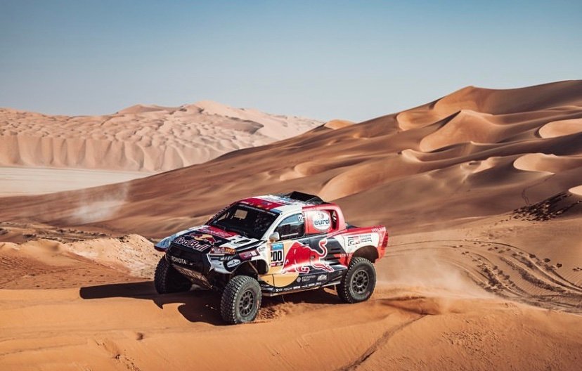 Avant la dernière étape de ce dimanche, Le Toyota Hilux de Nasser Al-Attiyah et de son co pilote, le Français Mathieu Baumel, conserve une énorme avance de une heure vingt et une minutes sur LoebLargement de quoi assuré car sauf imprévu, une hypothétique catastrophe … genre casse mécanique, qu’il est le seul, l’unique concurrent parmi la totalité des favoris à y avoir échappé, Nasser et Mathieu filent vers leur cinquième victoire au Dakar
