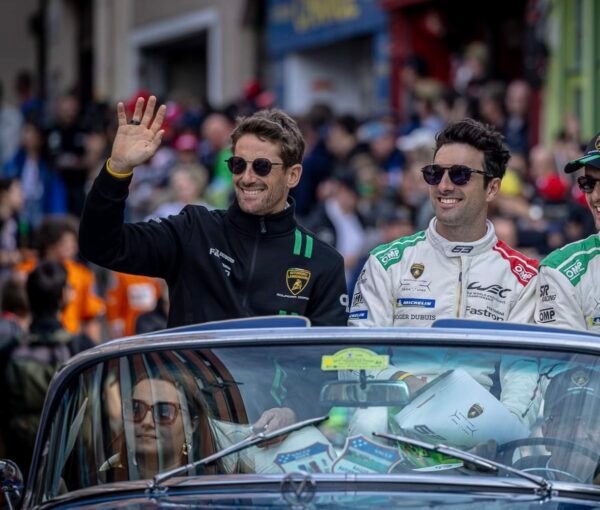 Bien évidemment, l’équipe Ferrari incroyablement victorieuse pour son retour en Sarthe l’an passé, de l’édition du Centenaire, a été follement applaudis et encouragés.Applaudissements nourris pour l’ancien Champion du monde de F1, le Britannique Jenson Button pilote de l’une des Porsche 963 Jota. Et pour le Français Romain Grosjean qui roule ici pour l’équipe Italienne Lamborghini