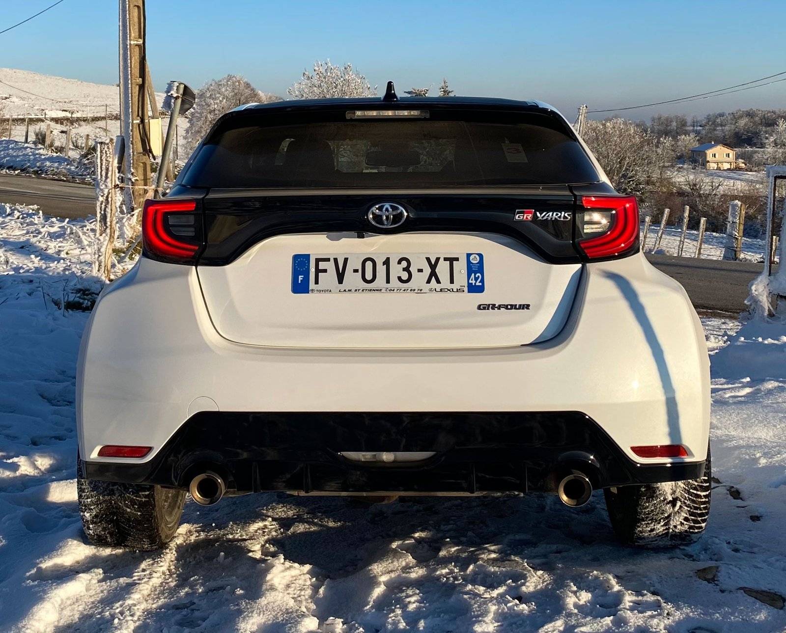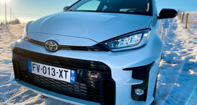 Ce modèle de cet Yaris GR, se décline en deux versions : Pack Premium & Track.La « Track » est doté d’un excellent châssis – plus rigide – et de suspensions GR Circuit, à double triangulation, ainsi que d’un différentiel Torsen à glissement limité. Je trouve que la différence est grande entre les deux versions et j’estime que la « Track » répond vraiment à l’attente sur un choix d’auto si radicale.Je ne m’attarderai pas sur le confort et la partie multimédia du Pack Premium… Affichage tête haute, avertisseur d’angles mort et de circulation arrière, système Audi JBL, éclairage d’ambiance intérieur ou encore radars de stationnement avant et arrière.Sur les routes froides, verglacées et enneigés de cols entourant Saint-Etienne, mon essai prend place dans les conditions de rêve pour la GR. Le système GR Four 4 roues motrices, dévoile tout son potentiel et la compacte est rivée au bitume. Souvenez-vous de son héritage et de la mythique Célica GT Four, des années 80-90, qui à l’époque avait fait les belles années des rallyes mondiaux, avec à la clé des titres de Championnes du monde! Sacres obtenus par les rallymen, le Français Didier Auriol et Finlandais Juha Kankkunen!