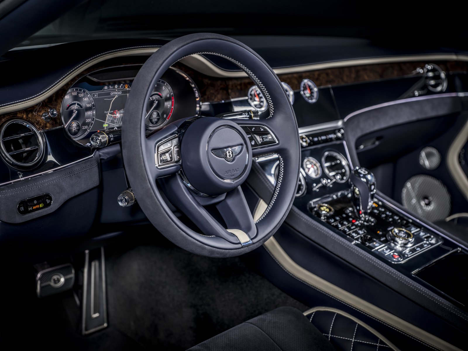 Cette dernière née de la gamme Bentley dispose de 4 roues motrices et d’un différentiel arrière électronique. En option, le freinage peut avoir plus de mordant avec des disques céramiques.Le système antiroulis 48 Bentley Active Drive complète les technologies du châssis comprenant une suspension pneumatique à 3 chambres et un amortissement dynamique.