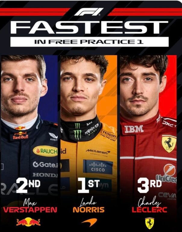 Lando a signé le meilleur temps en 1’24″485, non sans quelques erreurs durant la session, tandis que Max s’est classé deuxième, à seulement 0,08 seconde, en 1’24″493, se plaignant d’un problème avec sa RB21.