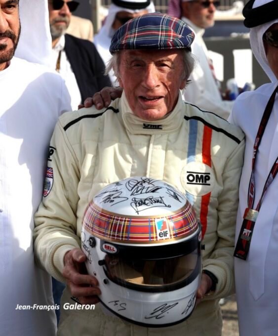 Jackie STEWART avec le casque dédicacé – Photo Jean-François GALERON[/caption] Ce casque sera vendu au profit de l’association « Race Against Dementia », fondée par l’ancien pilote du prestigieux Team de Ken Tyrrell Stewart après que sa femme a été diagnostiquée de démence.« C’est merveilleux que Michael ait pu le parapher pour une cause aussi noble, a confié le triple champion du monde au Daily Mail. Sa femme l’a aidé, et ce geste complète la collection de signatures de tous les champions encore parmi nous. »Âgé de 85 ans – il est né le 11 juin 1939 – le Champion Écossais a d’ailleurs repiloté sur le circuit de Sakhir ce dimanche 13 avril dans le cadre du Grand Prix de Bahreïn la Tyrrell-Ford de son dernier titre en 1973, avec ce casque sur la tête. Gilles GAIGNAULTPhotos : Jean-François GALERON ET F1
