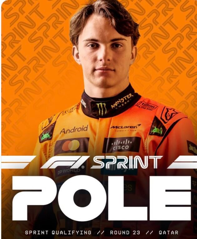 Mais au passage sur la ligne, Oscar Piastri a encore amélioré son temps, signant un chrono époustouflant de 1’20″055, décrochant ainsi la pole position pour la manche ‘Sprint de ce samedi à Losail.