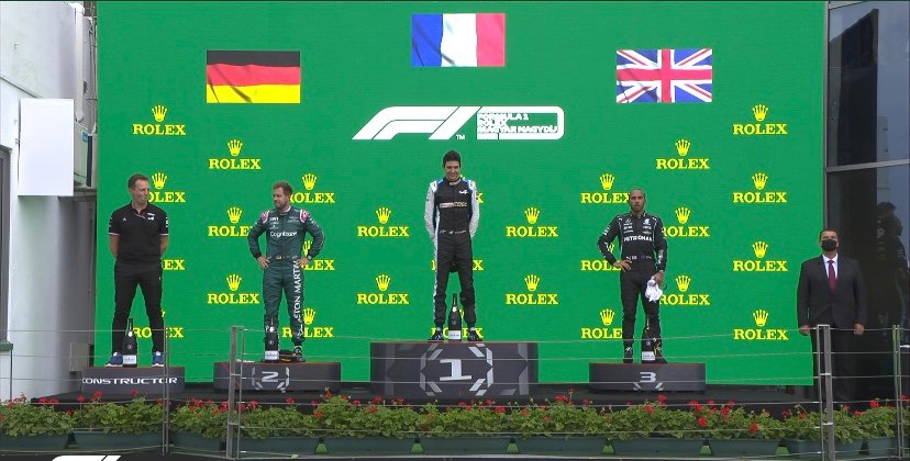 Et quelle sensationnelle victoire pour l’Alpine Renault du jeune Français Esteban Ocon, qui triomphe ce dimanche 1er août 2021 et remporte le Grand Prix de Hongrie, disputé sur le Hungaroring, la onzième des vingt-trois manches du Championnat du Monde de F1. Le 1er succès de sa jeune carriére en Formule 1!Et il est accompagné sur le podium pour sa toute première victoire en Grand Prix, tout simplement par deux anciens multiples Champions du Monde, l’Allemand Sebastian Vettel et le Britannique,Lewis Hamilton !