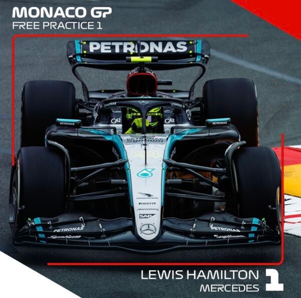A peine quelques jours après le GP d’Emilie-Romagne à Imola, les concurrents du Championnat du monde de F1 se retrouvent déja en Principauté de Monaco, sur l’un des circuits les plus emblématiques de l’histoire du Championnat du Monde.Et ce tracé sinueux et tortueux à, souhait qu’adoraient – le palmarès en témoigne, certains des plus illustres pilotes, tels Alain Prost, Ayrton Senna ou encore Michael Schumacher, a souri en ce vendredi à un de leurs successeurs sur les tablettes mondiales, le 1er temps de référence revenant au septuple champion du monde, Lewis Hamilton, lequel a conquis le meilleur temps de la première séance libre, au volant de sa Mercedes avec 1’12″169, repoussant son plus proche rival, le jeune Australien Oscar Piastri à 0.029 avec la plus rapide des McLaren-Mercedes, les monoplaces de Woking se présentant en terre monégasque avec une livrée jaune et verte aux couleurs du brésil justement dédiée au regretté pilote Brésilien de McLaren Ayrton Senna, le pilote le plus titré à Monaco avec six victoires !