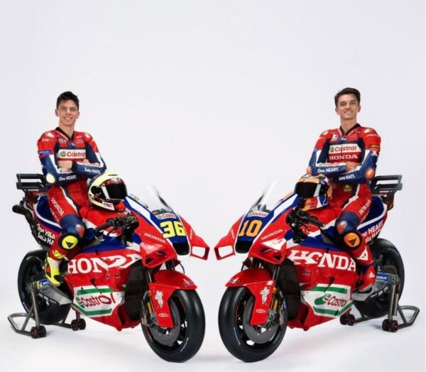 À l’occasion de la présentation 2025 de l’équipe Honda HRC Castrol, le team d’usine a dévoilé son nouveau look ce samedi 1er février 2025 à Jakarta. Joan Mir et Luca Marini, la paire des pilotes Honda HRC, a donc dévoilé et présenté la nouvelle livrée alors que l’usine célébrait son histoire riche en succès et se réjouissait de poursuivre son retour vers le sommet de la hiérarchie.Avec un palmarès de 25 Championnats du Monde constructeurs, 21 titres pilotes et 313 victoires en catégorie reine, l’histoire de Honda en MotoGP, reste à ce jour tout simplement inégalée. À l’aube de la saison 2025, l’usine de Hamamatsu s’est engagée à retrouver sa place au sommet de la discipline et cette année devrait démontrer l’engagement inébranlable de Honda à relever les défis et à récompenser la loyauté de ses fans.Le Champion du Monde 2020 jouera assurément un rôle fondamental en 2025 pour tenter de ramener la marque Japonaise au sommet de la catégorie reine du MotoGP!