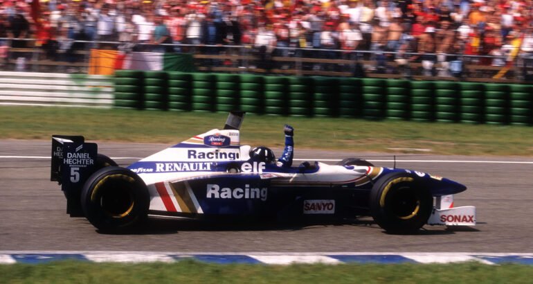WILLIAMS-RENAULT-une-association-qui-prit-fin-en-1997-©-Manfred-GIET.j[/caption] Dès la mi-saison, le mano à mano entre le fils de Graham et celui de Gilles, ne fit que s’amplifier avec des victoires de HILL aux Grands Prix du CANADA, de FRANCE, d’ALLEMAGNE et du JAPON, tandis que VILLENEUVE enchaînait aux Grands Prix d’ANGLETERRE, de HONGRIE et du PORTUGAL.Le palmarès avec 12 victoires, 12 Pole, 11 meilleurs tours, 21 podiums et 6 doublés reste éloquent…Finalement c’est ce duo qui décida du titre ‘’pilotes’’ et dont l’anglais remportera la mise avec 19 points d’avance sur son rival et équipier, le débutant Canadien, tandis que l’écurie WILLIAMS enfournait son 8ème titre ‘’constructeur’’.Quant à Damon HILL en remportant le titre ‘’pilotes’’ il devenait le seul fils d’un père Champion du Monde à s’inscrire à son tour au palmarès. [caption id="attachment_360535" align="aligncenter" width="800"]