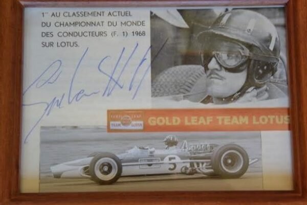 MUSEE-LOTUS-LUBERON-2015-Autographe-de-GRAHAM-HILL-Photo-Gilles-GAIGNAULT.[/caption] Graham HILL remportera un second titre de Champion du Monde en 1968, après être retourné dans l’équipe LOTUS de Colin CHAPMAN où cependant Jim CLARK était considéré comme pilote N°1.Et ce jusqu’à son décès accidentel survenu lors d’une épreuve de F2, sur le circuit de Hockenheim le 7 avril de cette même année 1968, qui permettra par la suite à Graham de remporter 3 Grands Prix qui furent décisifs pour qu’il s’attribue une deuxième couronne de Champion du Monde.Si Graham HILL qui a disputé 176 GP de F1, remportant 14 victoires, créa ensuite sa propre écurie à partir de 1973 sous l’appellation de EMBASSY HILL conjointement avec un cigarettier et équipé de châssis SHADOW d’abord et LOLA ensuite en 1975, ce Team devint le Team HIL à part entière sous le sigle HILL GH1 jusqu’à l’accident tragique du 29 novembre 1975… [caption id="attachment_483580" align="aligncenter" width="600"]