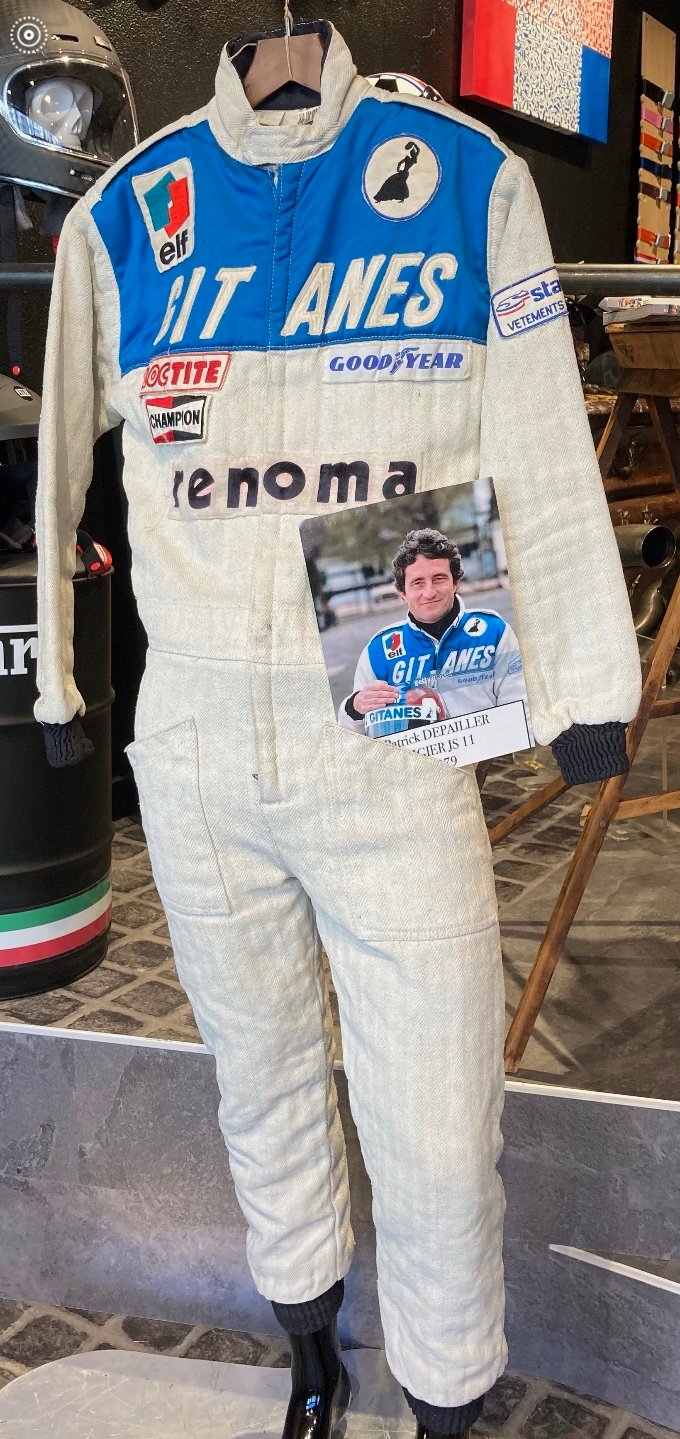 A travers de nombreux objets réunis, combinaisons des différentes périodes de la carrière de Patrick (Alpine-Tyrrell- Ligier) des casques GPA et de très nombreuses photos dont certaines inédites, réunis donc par Matthieu Graîlle, l’exploitant de la galerie, avec la collaboration active de Loïc Depailler, le fils du regretté pilote, emporté par sa passion le 1er août 1980, lors d’une session d’essai privé à Hockenheim, avec son Alfa Roméo F1