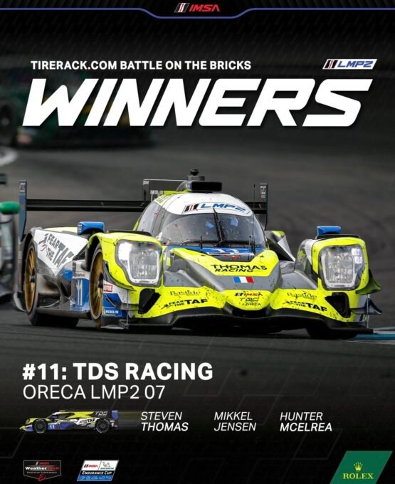 La catégorie LMP2 a également été riche en action. L’Oreca7 du TDS Racing s’impose, avec le trio Mikkel Jensen, Steven Thomas et Hunter McElrea, signant ainsi sa troisième victoire consécutive à Indianapolis.