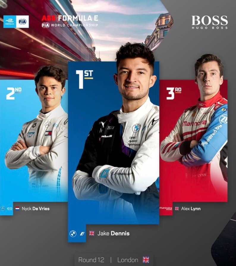 Jake Dennis qui exultait :« Après de si bonnes qualifications, remporter la victoire maintenant est tout simplement sensationnel. J’ai fait un casque spécial pour ce week-end, un casque britannique et je suis juste aux anges. C’était un travail parfait de toute l’équipe. Nous avons pris un risque avec la stratégie, nous aurions pu jouer la sécurité mais nous sentions que nous avions un meilleur rythme que Mahindra et cela a payé ! »Et il poursuivait, précisant :« Parce que ce n’était pas une course si limitée en énergie, j’ai pu faire cinq tours en poussant à fond et cela m’a permis de créer l’écart avec Lynn. Après l’avoir vu faire une erreur au virage 10, je me suis dit « c’est bon pour la victoire ». J’avais juste besoin de trois tours comme en qualification, j’ai réussi à le faire, à obtenir cet écart de deux secondes et à remporter la victoire. Je suis aux anges… «