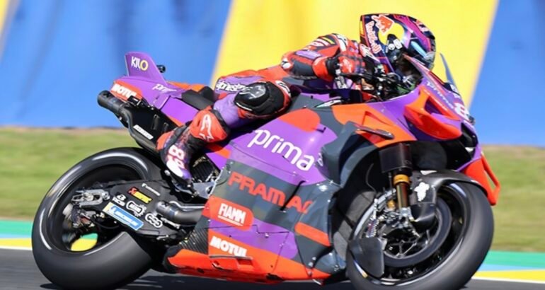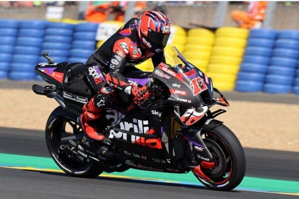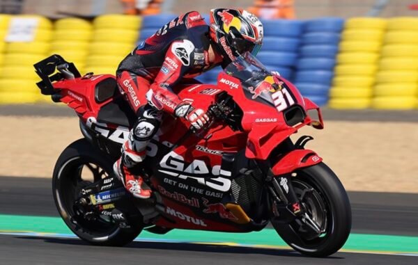 Derrière, le ‘rookie Pedro Acosta, l’Espagnol du Red Bull GASGAS Tech3, signe une plus qu’ honorable septième place devant le héros local, le Français Fabio Quartararo au guidon de la peu performante Monster Energy Yamaha Moto, qui a fait soulever les milliers de spectateurs présents au Mans ce samedi.Le Français signe son meilleur résultat de la saison dans l’exercice et partira aux côtés de Franco Morbidelli l’autre pilote Prima Pramac Racing, qui continue sa progression sur la GP24.