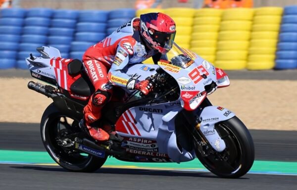 Passé par les repêchages, Enea Bastianini le partenaire de ‘Pecco chez Ducati Lenovo Team, complète le Top 10.Marc Márquez avec sa Ducati du Gresini Racing, s’est quant à lui fait sortir en Q1 après avoir évité de peu la chute dans la chicane Dunlop.Le N°93 partira seulement treizième tandis que lev second pilote Françai,s Johann Zarco qui pilote la poussive LCR Honda Castro) est quinze après une chute dans le virage de la chapelle.Brad Binder, le sud-africain de Red Bull KTM Factory Racing, a vécu un vendredi compliqué et les choses ont empiré en qualifications puisque le Sud-Africain a joué de malchance et s’élancera depuis la dernière place. Gilles GAIGNAULTPhotos : Paulo GALEGO – Thierry COULIBALY