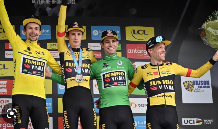 tuEn tant que sponsor, JUMBO est aussi bien présent dans le sport cycliste avec une brillante équipe JUMBO VISMA de tout premier plan comprenant des ‘’braquets’’ tels que VINGEGAARD-ROGLIC-LAPORTE ou VAN AERT et qui n’est jusqu’à présent pas impactée tout comme Max VERSTAPPEN, d’ailleurs, lui non plus.