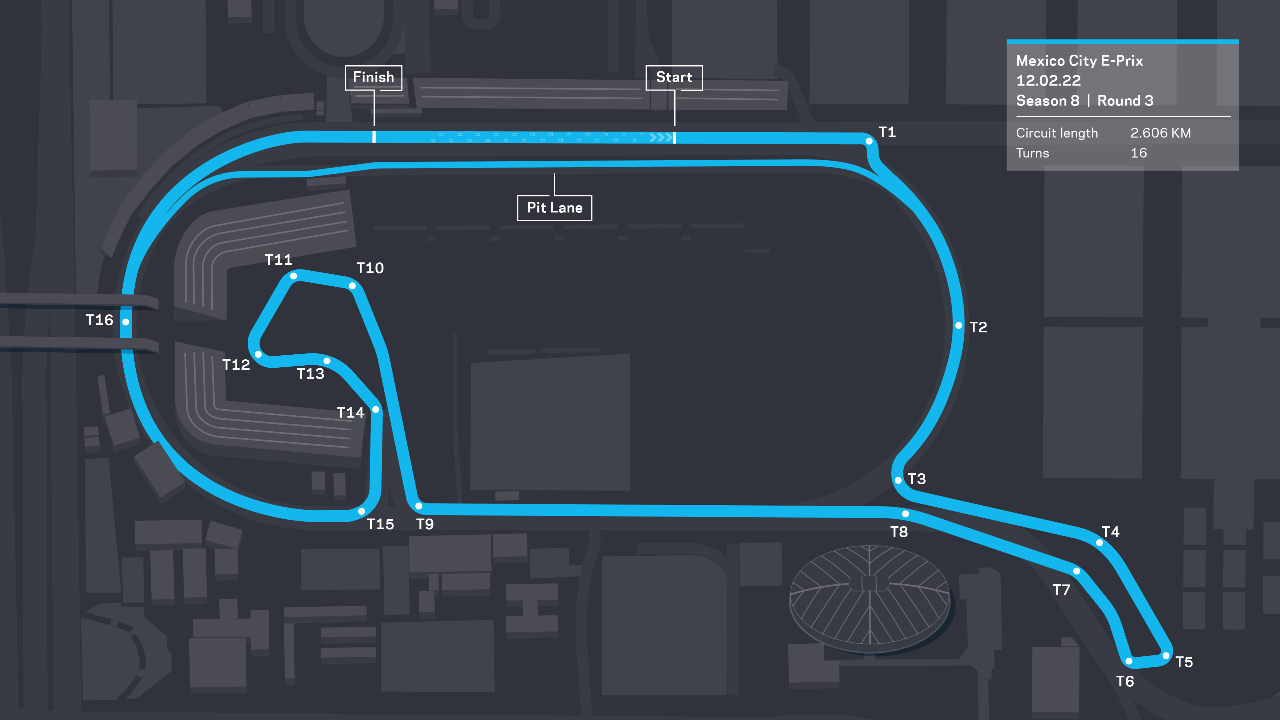 Ce week-end, la Formule E effectue une sixième visite sur le circuit Autodromo Hermanos Rodriguez qui figure au calendrier depuis la saison 2, à l’exception d’un voyage à Puebla en saison 7. Le circuit de 16 virages et de 2,606 km est un mélange parfait de longues lignes droites rapides et d’un secteur intérieur technique au niveau du légendaire stade Foro Sol, qui abrite des dizaines de milliers de fans.