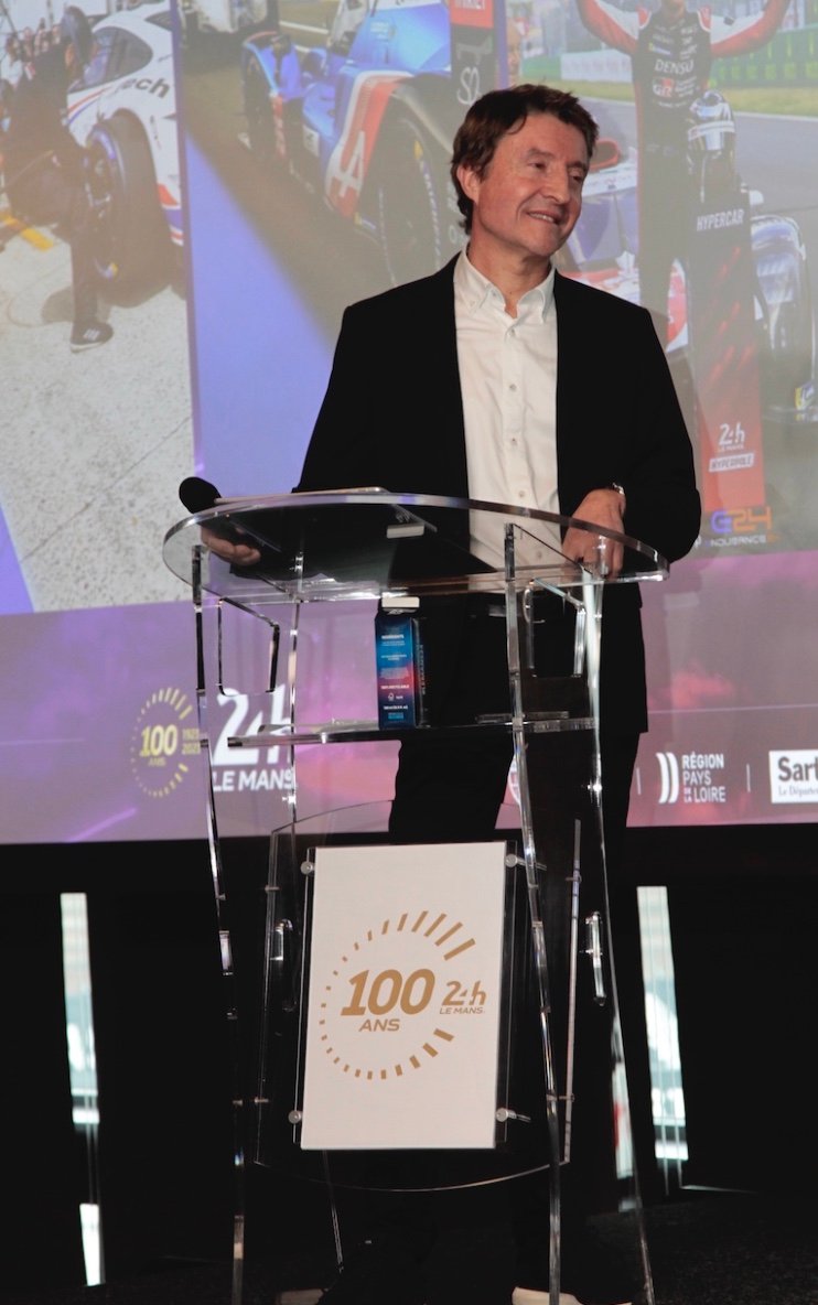 Et Dominique Le Mèner, Président du Conseil départemental de la Sarthe, poursuivait : “Grâce à la course des 24 Heures du Mans, depuis cent ans, c’est tout notre département qui vibre à l’unisson. Les 24 Heures du Mans attirent chaque année en Sarthe des centaines de milliers de spectateurs. C’est un laboratoire d’innovation et un réel vecteur d’attractivité pour notre territoire, aux multiples retombées économiques. Cet évènement grandiose rassemble, fédère et rend fiers les Sarthois ! Le Conseil départemental aura à cœur d’organiser des animations gratuites, accessibles à tous, directement dans les territoires. Dédicaces de pilotes, projections de films, expositions, conférences dans les collèges et les communes sarthoises, de nombreuses animations seront organisées autour du Centenaire des 24 Heures. Nous serons également présents avec un stand, comme chaque année au pesage. Je me réjouis également de notre implication, à travers l’action du Syndicat Mixte du Circuit des 24 Heures, pour réaliser 3 opérations de grande envergure pour adapter les infrastructures aux nouveaux usages et contribuer ainsi au développement de l’attractivité de la course, pour améliorer toujours plus l’accueil des spectateurs.”