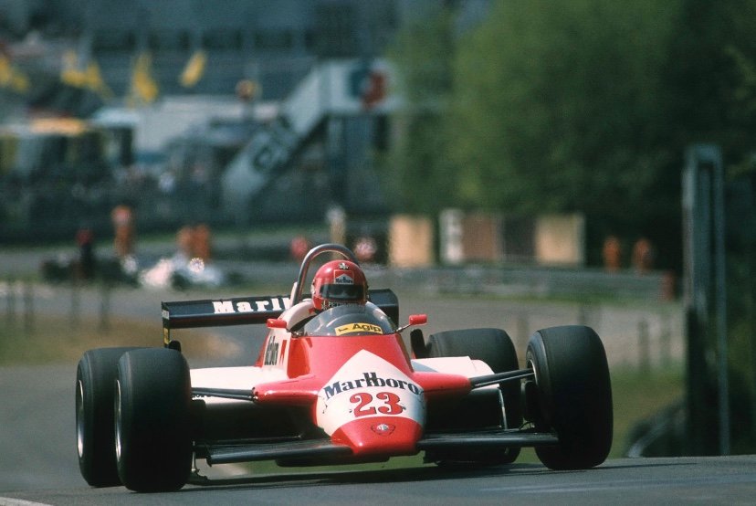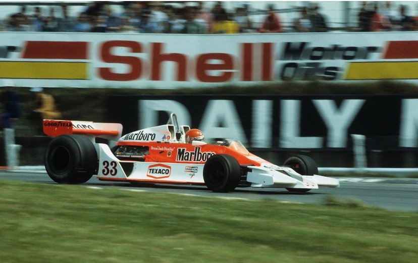 Bruno GIACOMELLI quant à lui eu cependant le privilège à ses débuts de remporter en 1976, le très réputé Championnat d’Angleterre de F3 et lorsque deux ans plus tard, il fut sacré Champion d’Europe de F2, après avoir remporté 8 des 12 manches sur une MARCH-BMW, il devint du coup le pilote le plus populaire en Italie.Grâce à l’appui financier du groupe cigarettier Philip Morris (Marlboro) le lendemain de son 25ème anniversaire, il fut incorporé au sein du Team Mc LAREN, sur une 3ème M23 d’usine, ce que le règlement autorisait à l’époque. [caption id="attachment_406608" align="aligncenter" width="828"]